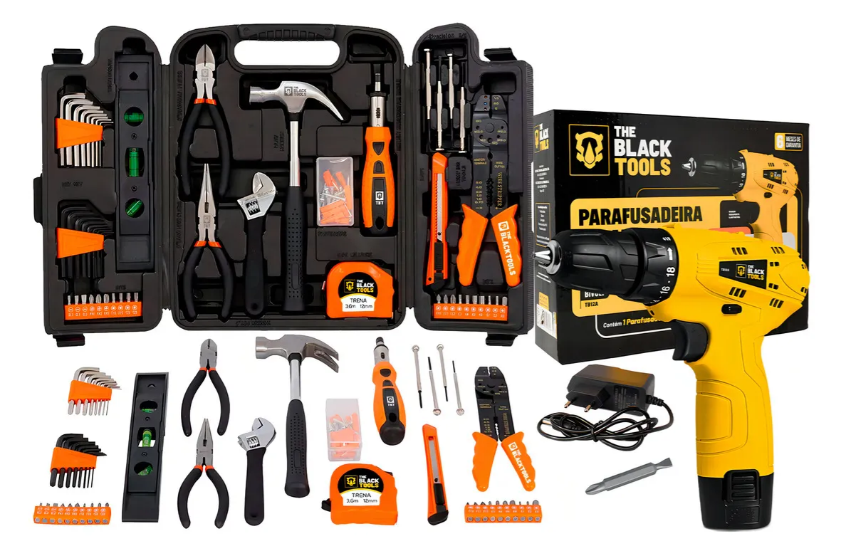 Para os pequenos reparos e projetos em casa. Os noivos já não são muito bons com tarefas manuais, sem as ferramentas adequadas então rs