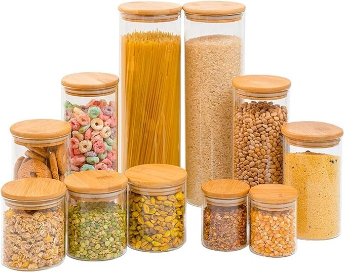 Kit Pote de Vidro com Tampa de Bambu